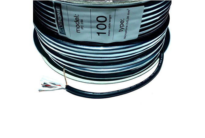 Καλώδιο μικροφώνου Διάμετρος Αγωγών: 2x0,38mm. Χαρακτηριστικά: OFC Μήκος: 100m BULK Χρώμα: ΜΑΥΡΟ Διαθέσιμο σε κουλούρα 100mΠαράγεται στην Iταλία