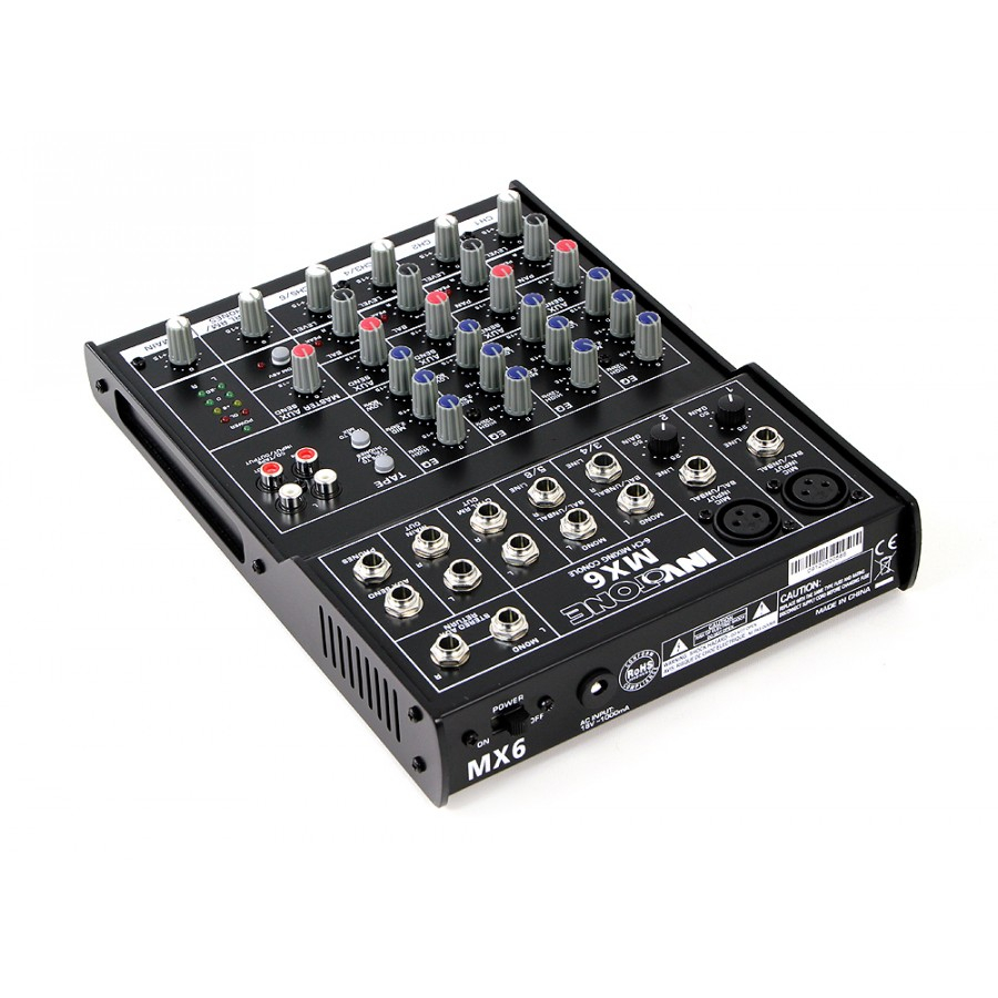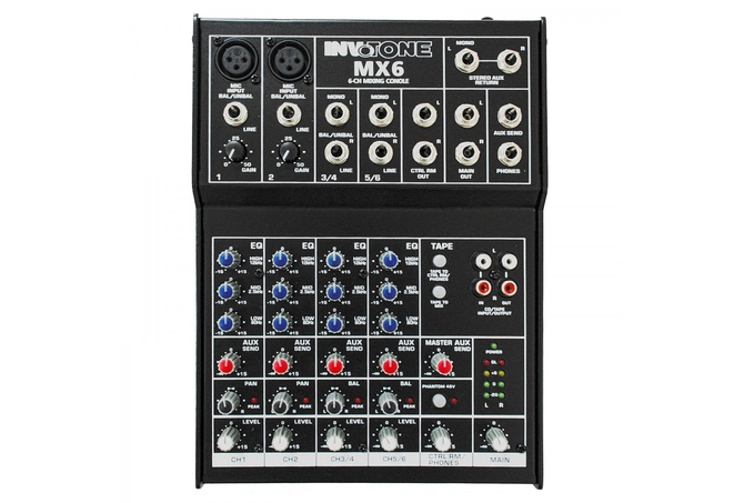 Κονσόλα μίξης με 6 ανεξάρτητα κανάλια (2 mono input - 2 stereo input - EQ τριών περιοχών σε όλα τα κανάλια). 2-Track IN/OUT και 1 AUX GAIN control. 2 μικροφωνικά κανάλια με 48V Phantom Power για πυκνωτικά μικρόφωνα.