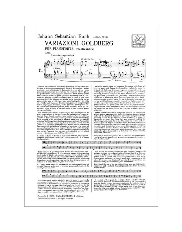 J.S.Bach - Variazioni Goldberg per pianoforte / Εκδόσεις Ricordi