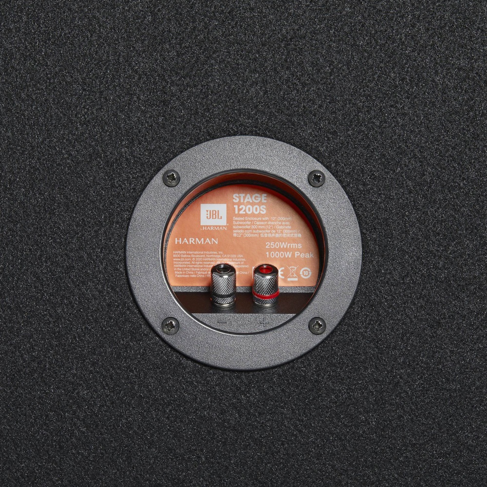 The Stage 1200S sealed enclosure comes loaded with one Stage 122 12" subwoofer, which features a polypropylene cone with a rubber surround. The sub handles up to 250 watts RMS, and its 2-ohm impedance makes it a great match for most sub amplifiers. The enclosure is made from 5/8" MDF covered with black carpet to withstand the bumps and bruises of life in a car. JBL tunes the enclosure to maximize the sub's performance, so you can count on impressive low-end punch.