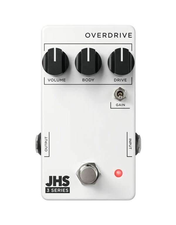 Το 3 Series Overdrive της JHS Pedals προσφέρει μια μεγάλη γκάμα ήχων overdrive με απλή σχεδιαστική αισθητική. Μπορείτε να επιτύχετε οτιδήποτε, από boost, transparent low gain έως τεράστιους huge amp-like μεσαίου overdrive ήχους. Οι απλές λειτουργίες του σάς δίνουν τον έλεγχο της έντασης ήχου, του σώματος (ή του EQ) και του Drive. Η εναλλαγή Gain σάς δίνει τη δυνατότητα επιλογής μεταξύ πιο κορεσμένων και συμπιεσμένων ή πιο ανοιχτών και crunchy δυναμικών. Αυτός ο διακόπτης παίζει μεγάλο ρόλο στον τρόπο με τον οποίο το πεντάλ ανταποκρίνεται στο παίξιμο και στις δυναμικές σας ως παίκτης. Το JHS Pedals 3 Series Overdrive λειτουργεί με τροφοδοτικό 9V DC Negative Center και καταναλώνει 12 mA.