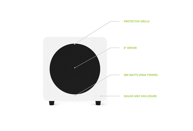 Σε περίπου 28 cm προς κάθε κατεύθυνση, το SUB8 χωράει κάτω από γραφεία ή στο μικρότερο διαμέρισμα όπου τα παραδοσιακά subwoofer οικιακού κινηματογράφου μπορεί να κυριαρχούν στον χώρο.
