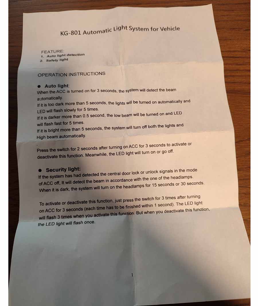 KG-801 Automatic Light System for Vehicle