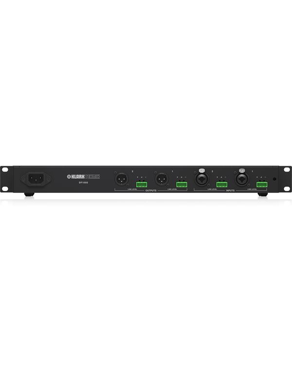 Όπως λέει η παλιά παροιμία, «Δεν μπορείς να κρίνεις ένα βιβλίο από το εξώφυλλό του», η αληθινή ομορφιά του DF1000 κρύβεται κάτω από τον κομψό αισθητικό σχεδιασμό και τo φιλικό προς το χρήστη interface . Στο εσωτερικό χτυπά η καρδιά ενός πραγματικά επαγγελματικού επεξεργαστή, διπλού καναλιού, αυτόματου feedback suppression processor, που δόθηκε στη ζωή από έναν από τους κορυφαίους κατασκευαστές ηλεκτρονικών επεξεργαστών σήματος υψηλής τεχνολογίας στον κόσμο. Οι εξαιρετικά γρήγοροι και εξαιρετικά ακριβείς αλγόριθμοι ανίχνευσης ανάδρασης του DF1000 βρίσκουν άμεσα κρίσιμες συχνότητες και εφαρμόζουν έως και 32 φίλτρα ανά κανάλι για την εξάλειψη του feedback. Είτε η εφαρμογή σας απαιτεί προστασία για τον προφορικό λόγο, τις μουσικές παραστάσεις ή και τα δύο – το DF1000 είναι η ιδανική λύση. Από τις αίθουσες συνεδριάσεων, τις αίθουσες συναυλιών, τις εφαρμογές σε οίκους λατρείας, οποιοσδήποτε χώρος με ζωντανό σύστημα ήχου θα επωφεληθεί από την άνευ προηγουμένου απόδοση και αξία του DF1000.