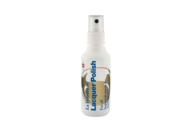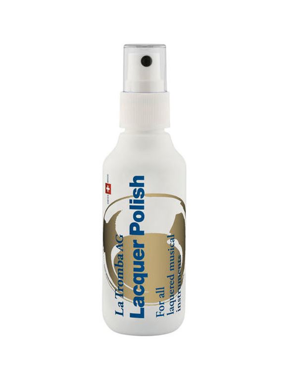 LA TROMBA LACQUER POLISH , καθαριστικό - γυαλιστικό για χάλκινα πνευστά με λάκα. Με τη χρήση του la tromba lacquer polish, επιτυγχάνεται ο καλύτερος καθαρισμός και η λαμπρή γυαλάδα.. Ο σχηματισμός μη ‘‘λιπαρού’’ φιλμ στην επιφάνεια προστατεύει από επιβλαβείς επιδράσεις της εφίδρωσης από τα χέρια. Συσκευασία σπρέι 80 ml.