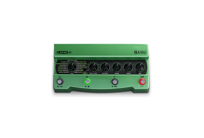 Το εφέ Line6 Delay DL4™ MkII περιλαμβάνει ότι υπήρχε στο αρχικό πετάλι Line6 DL4 Delay Modeler, ενώ εισάγει 15 νέα Delay MkII που προέρχονται από την οικογένεια πολυεφέ Line6 HX® και loopers με χρόνο ρεκόρ έως και 240 δευτερόλεπτα (επεκτάσιμο για αρκετές ώρες χρησιμοποιώντας μια προαιρετική κάρτα microSD).