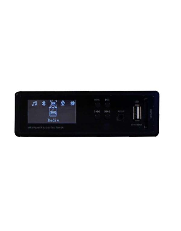 FM radio, BlueTooth, USB & SD card memory interface, AUX input, IR Remote control