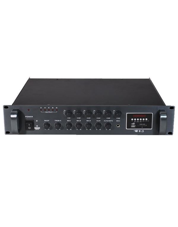 Μίκτης ενισυχτής 6 ζωνών, 650W (100V / 4-16Ω) με είσοδο USB, Tuner, Bluetooth και κάρτα SD.