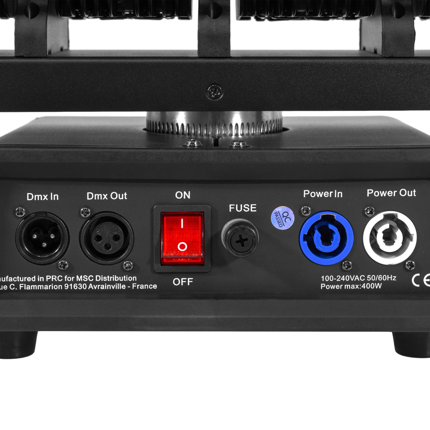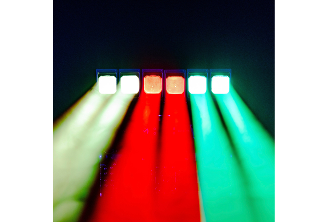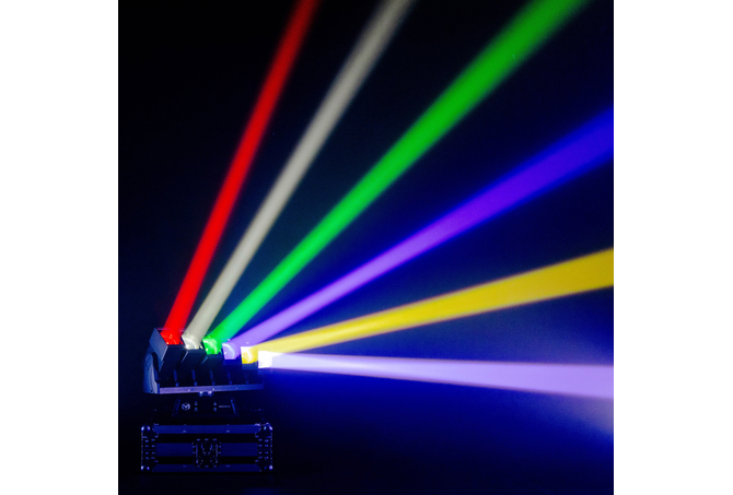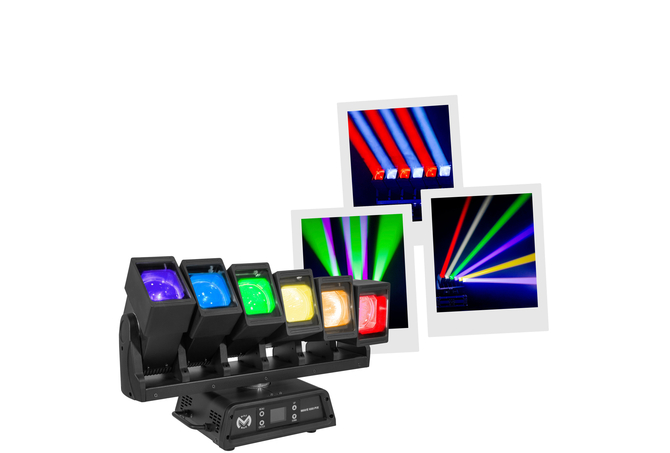 - Εξοπλισμένο με 6 ισχυρά RGBW LEDs των 60 W και κινητό ζουμ 4°–18°, προβάλλει έντονες δέσμες φωτός που αλλάζουν αμέσως την ατμόσφαιρα. Κάθε LED μπορεί να ελεγχθεί ξεχωριστά, ενώ τα ενσωματωμένα macros δημιουργούν δυναμικά εφέ, όπως κύματα φωτός που ακολουθούν τον ρυθμό της μουσικής.
