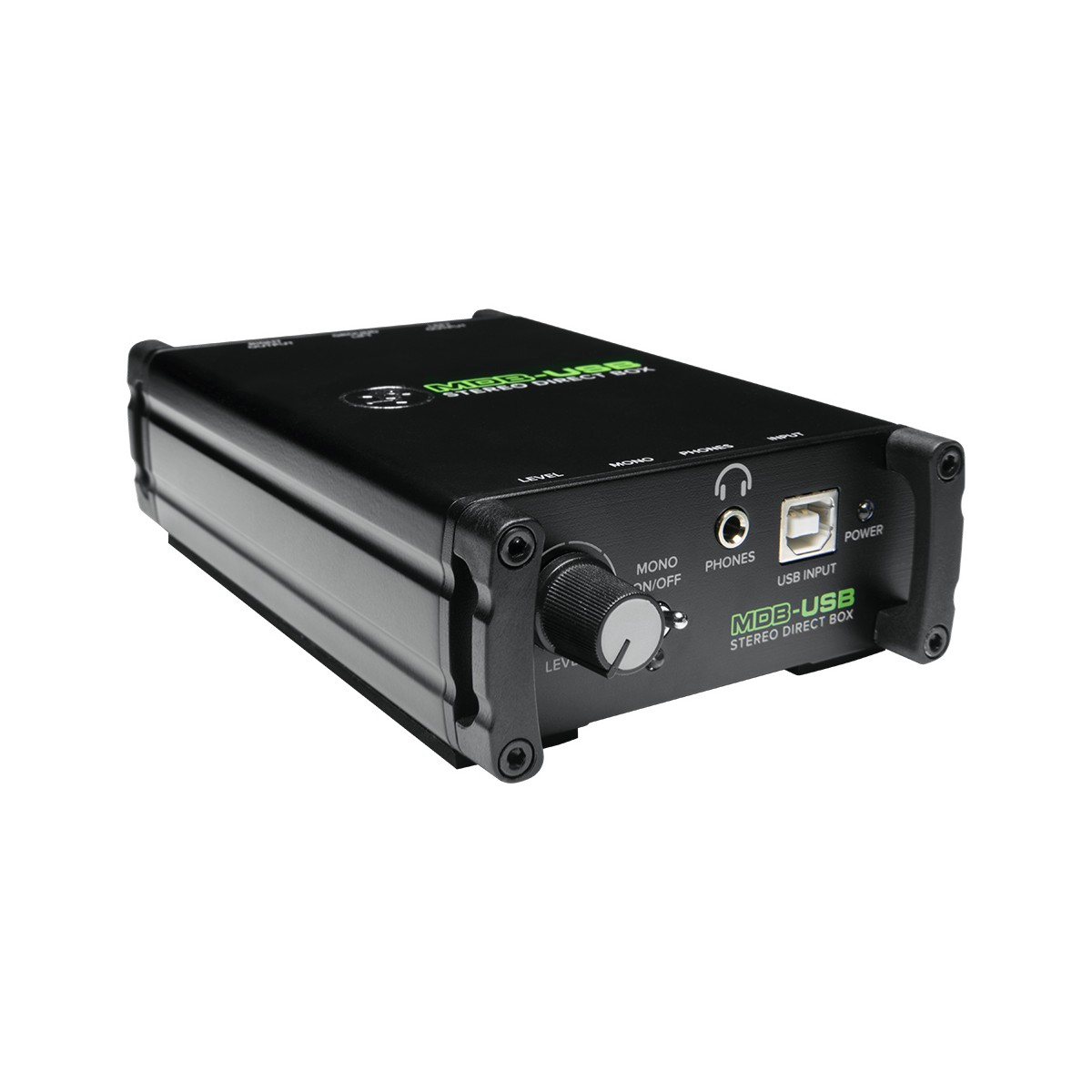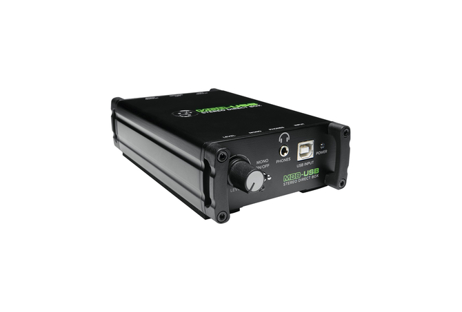 Mackie MDB-USB, στερεοφωνικό DI Box με ενσωματωμένη κάρτα ήχου που συνδέεται με υπολογιστή και δίνει τη δυνατότητα μεταφοράς του ψηφιακού σήματος μέσω balanced στερεοφωνικής εξόδου.