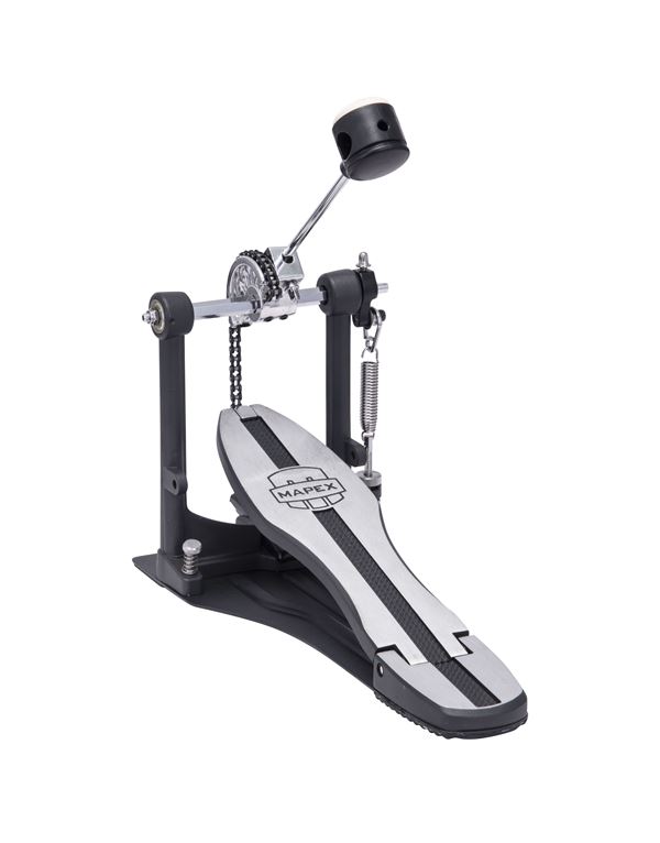 Με τυπικά χαρακτηριστικά, όπως το σύστημα μετάδοσης μονής αλυσίδας, ρυθμιζόμενα ελατήρια, αναστρέψιμο κόπανο και συμπαγή πλάκα βάσης, το πετάλι κάσας Mapex P410 παρέχει σταθερή απόδοση και ανθεκτικότητα.