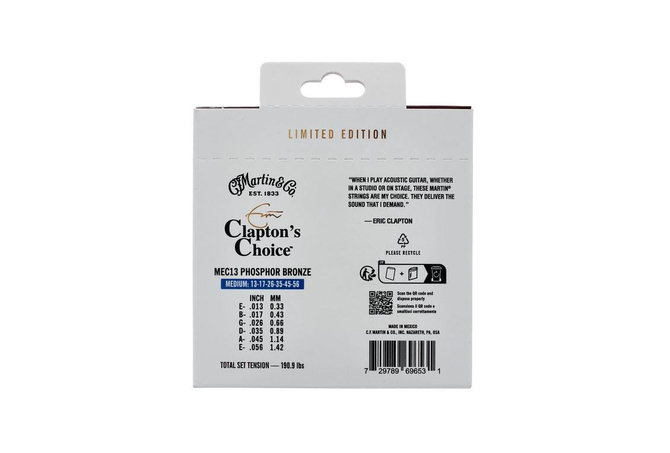 Οι χορδές αυτές, από φωσφορο-μπρούντζο 92/8, προσφέρουν τον ζεστό, πλούσιο ήχο και την εξαιρετική ευκολία στο παίξιμο που τις έχουν κάνει την αγαπημένη επιλογή του Clapton.