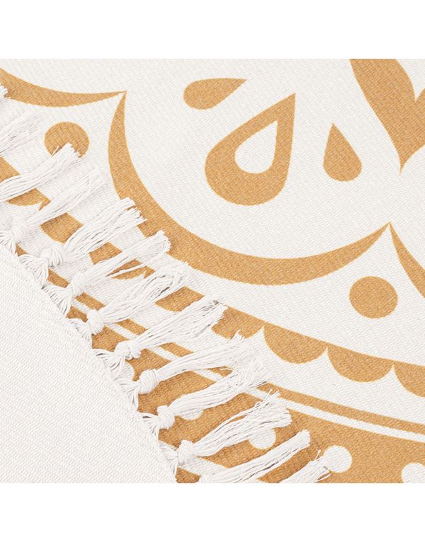 Το στρογγυλό του σχήμα με όμορφα σχέδια λουλουδιών και διακοσμητικές φούντες δημιουργεί ένα οπτικά ηρεμιστικό σημείο για προβληματισμό και χαλάρωση.