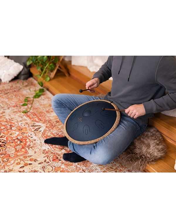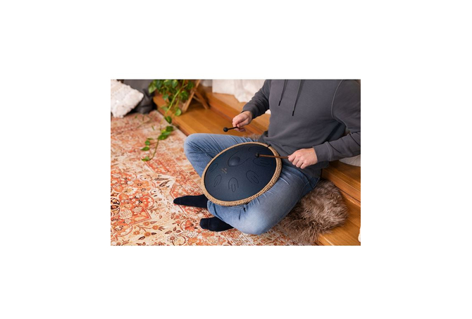 Στο κάτω μέρος του steel tongue θα βρείτε την οπή ήχου, η οποία μπορεί να κλείσει με μια τάπα σιλικόνης για να κάνει τον ήχο ακόμα πιο συμπαγή. Υπάρχουν επίσης τρία πόδια σιλικόνης στο κάτω μέρος για να μην γλιστράει. Μπορείτε να παίξετε το Octave Steel Tongue Drum με κοπανάκια (mallets) ή με τα δάχτυλά σας. Απλώς τοποθετήστε το σε μια απλή επιφάνεια ή στην αγκαλιά σας και ξεκινήσετε να παίζετε.