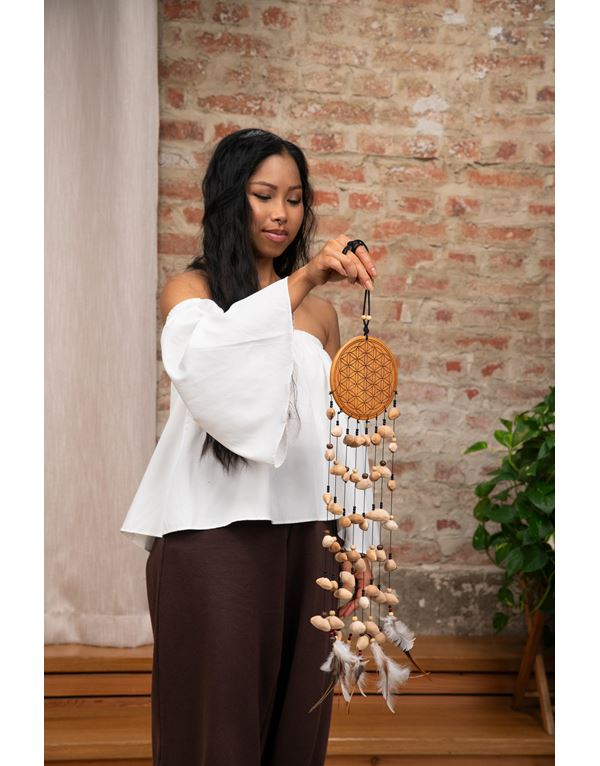 Ο μελωδός Meinl Sonic Energy Kenari Chimes διαθέτει ένα όμορφο σχέδιο Flower of Life και θυμίζει μια ονειροπαγίδα.