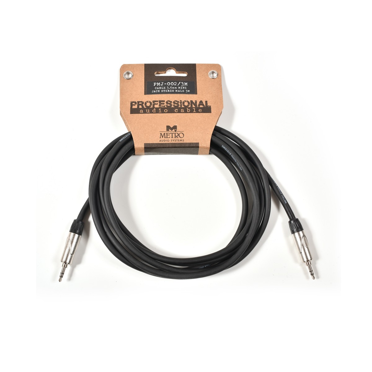Metro Audio Systems επαγγελματικό καλώδιο balanced PMJ-002/3M, jack στερεοφωνικό αρσενικό 3.5mm σε jack στερεοφωνικό αρσενικό 3.5mm. Το καλώδιο είναι επενδυμένο με PVC μαύρου χρώματος, διαθέτει θωράκιση είναι OFC και μήκους 3 μέτρων