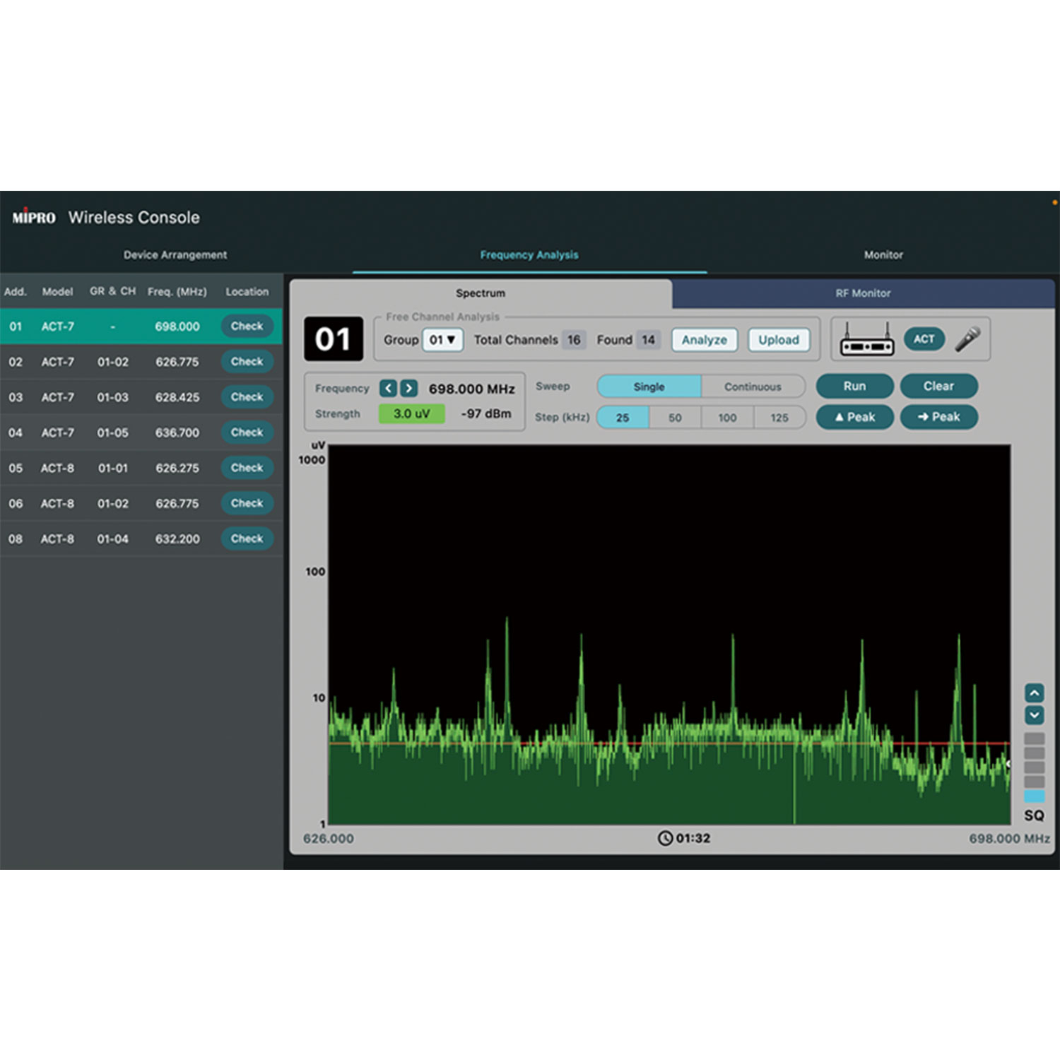 Built-in αναλυτής φάσματος για αυτόματη σάρωση καναλιών & συχνοτήτων χωρίς παρεμβολές
