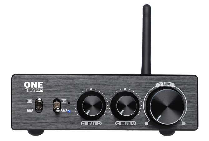 One Plus PRO, ολοκληρωμένος ενισχυτής ισχύος 2 x 85W RMS / 8Ω, 2 x 108W RMS / 4Ω, class D, με ιδιαίτερα μικρό μέγεθος ιδανικός για Hi Fi συστήματα και μόνιμες εγκαταστάσεις σε επαγγελματικούς χώρους. Ο νέος ενισχυτής διαθέτει είσοδο RCA και Bluetooth 5.2 για streaming μουσικής ασύρματα από φορητές συσκευές και υπολογιστές. Διαθέτει έξοδο (line out) για σύνδεση με άλλο ενισχυτή ή subwoofer. Στο μπροστινό μέρος εκτός από τον ρυθμιστή έντασης υπάρχει διακόπτης επιλογής ανάμεσα στο εισερχόμενο σήμα RCA ή Bluetooth, διακόπτης ON/OFF και ρυθμιστικά Bass & Treble. Τα υλικα κατασκευής του είναι εξαιρετικής ποιότητας όπως τελεστικοί TPA3255 & 5NE5532 OP και πυκνωτές ELNA και NICHICON. Στο κύκλωμα του Bluetooth χρησιμοποιεί το Qualcomm QCC304X high quality receiving chip με πολύ χαμηλό latency.Τεχνικά Χαρακτηριστικά:Κανάλια: 2Ισχύ: 2 x 108W RMS / 4Ohm και 2 x 85W RMS / 8OhmSpeaker impedance: 4-8ΩΑπόκριση συχνότητας: bass ±12dB, treble ±10dB Signal to Noise Ratio: 90dBΈισοδοι: RCA, BluetoothΈξοδοι: AUXBluetooth: 5.2 Υποστηριζει 16-24bit 44.1-48khz Supported format: sbc/aac/aptx/aptx-hdΔιαστάσεις (ΠxΒxΥ): 114 x 168 x 32mmΒάρος: 0.635kg