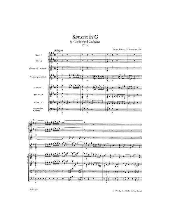 Mozart W. A. – Kοντσέρτο Για Bιολί & Oρχήστρα Nο. 3 σε Σολ Mείζονα KV 216 (Urtext)