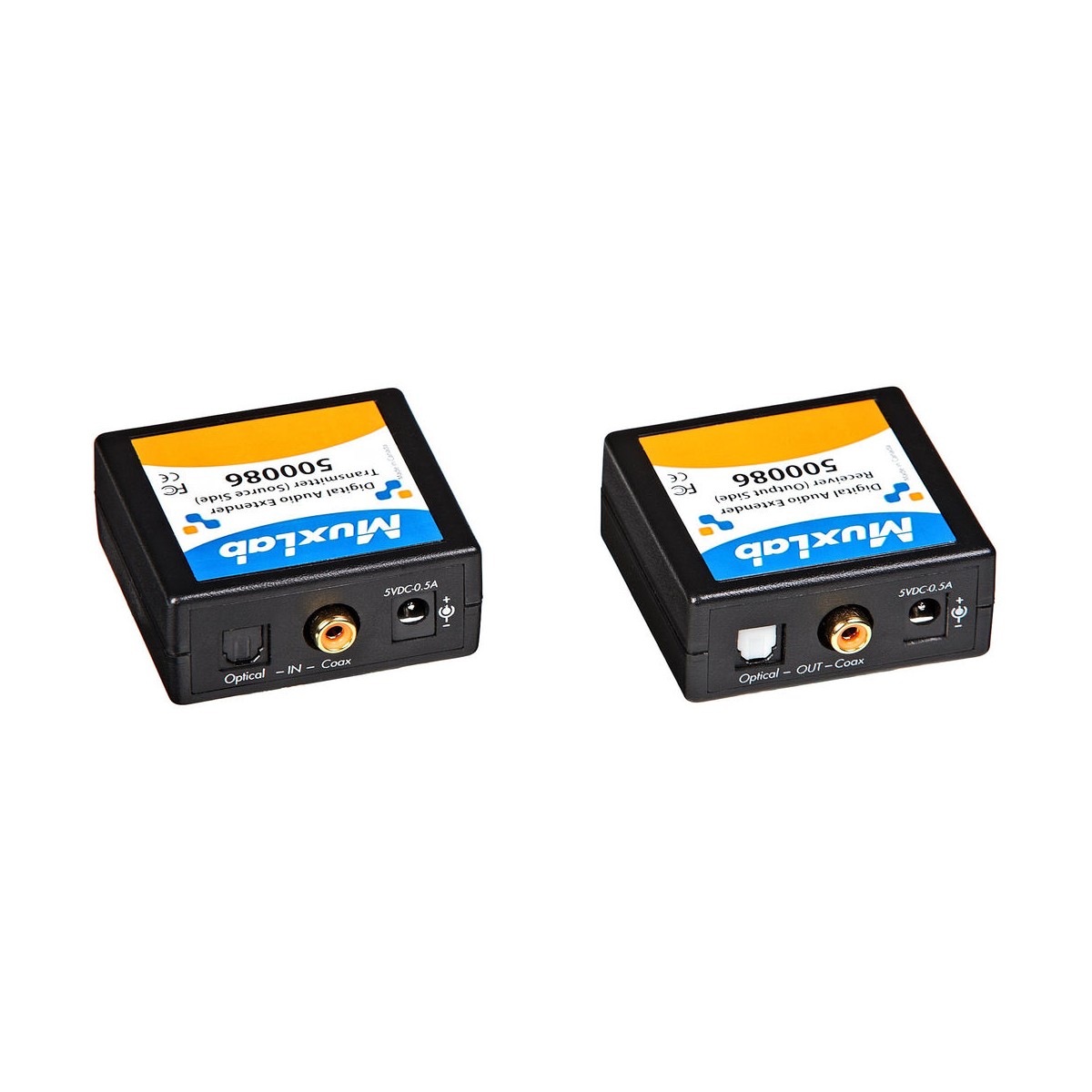 Το MuxLab Digital Audio Extender Kit (500086) επιτρέπει μία (1) Digital Coax (S/PDIF) ή Digital Optical (TOSLINK) πηγή να συνδεθεί σε έναν Digital Audio Receiver που υποστηρίζει είτε Digital Coax (S/PDIF), είτε Digital Optical (TOSLINK) εισόδους. Το σήμα μετάδοσης ήχου μπορεί να διανεμηθεί σε απόσταση έως και 150m point-to-point με ένα Cat5e/6.