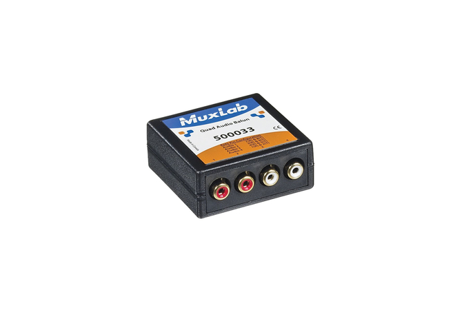 Quad Audio Balun 500033, RCA, επιτρέπει τη μεταφορά έως τεσσάρων ανεξάρτητων σημάτων Line ή δύο στερεοφωνικά RCA μέσω ενός και μόνο καλωδίου Cat5e/6, σε αποστάσεις έως 1 χιλιόμετρο σε σύνδεση point-to-point.