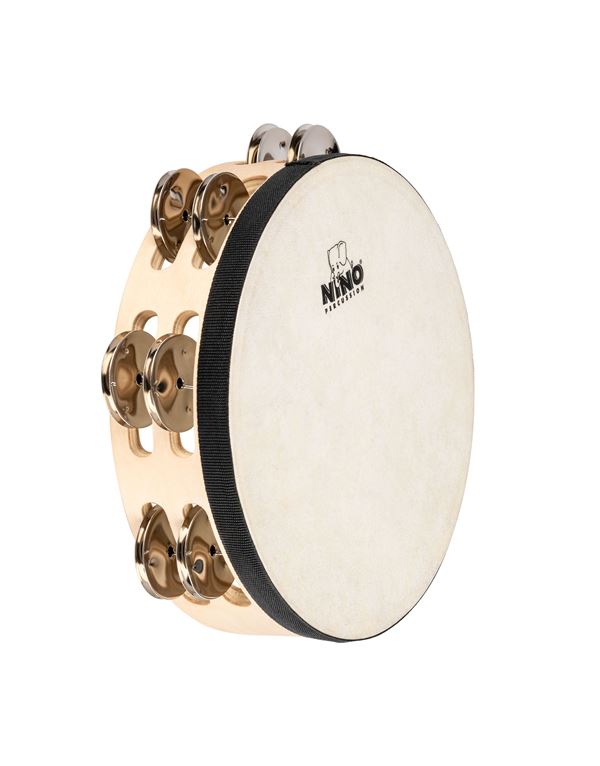 Το ξύλινο μη χορδιζόμενο ταμπουρίνο NINO® διαθέτει στιβαρό πλαίσιο, συνθετικό δέρμα και αστραφτερό ήχο.