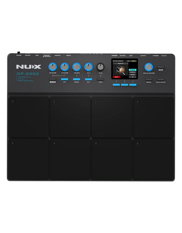 Το ΝUX DP-2000, είναι ένα ισχυρό percussion pad. Με τα 8 velocity sensitive ανεξάρτητα pads, το DP-2000 όχι μόνο περιλαμβάνει δείγματα ακουστικών τυμπάνων υψηλών προδιαγραφών από τη ηλεκτρονικό drum set DM-8, αλλά περιλαμβάνει επίσης δείγματα κρουστών και ηλεκτρονικών ήχων. Επιπλέον, μπορείτε να επεκτείνετε τη βιβλιοθήκη ήχου σας εισάγοντας τα δικά σας δείγματα με έναν δίσκο U. Επιπλέον, το DP-2000 περιλαμβάνει εισόδους για εξωτερικά pads. Προσθέστε εύκολα ένα πεντάλ hi-hat και ένα kick drum, κάνοντας το DP-2000 ένα μίνι κιτ e-drum.