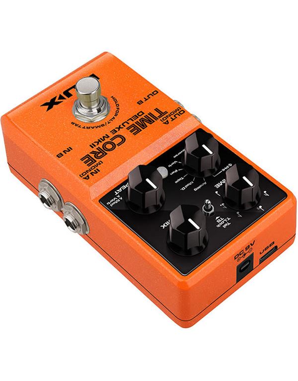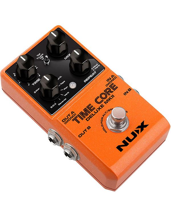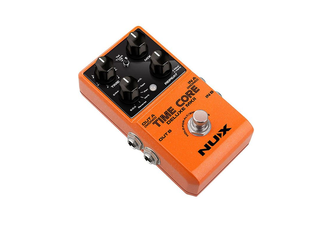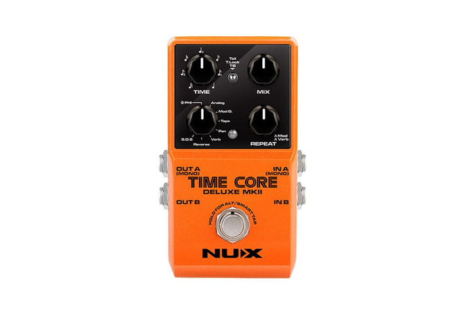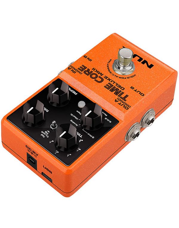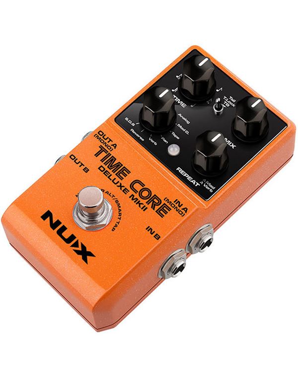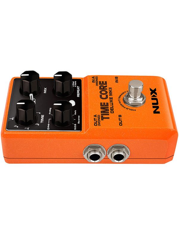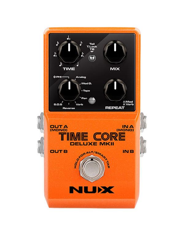 Το NUX TIME CORE DELUXE MKII είναι ένα Delay πετάλι με 7 διαφορετικούς τύπους και έναν phrase looper, συμπεριλαμβανομένων των ΦPhi Digital Delay, Analog Delay, Modulation Delay, Tape Echo, Pan Delay, Verb Delay, Reverse Delay και Sound On Sound. Μπορείτε να αλλάξετε τον τύπο Delay χρησιμοποιώντας τον περιστροφικό διακόπτη Type.