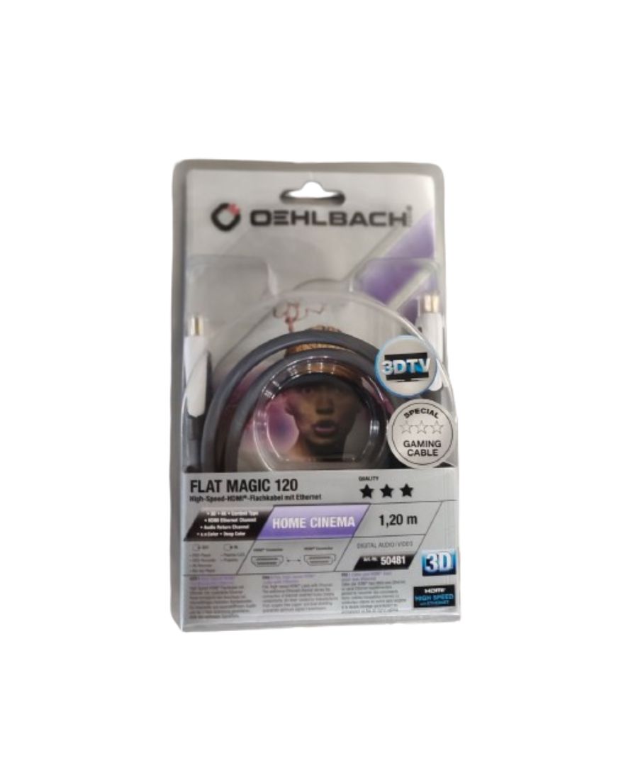 Flat, high-speed HDMI cable with Ethernet. The additional Ethernet channel allows the connection of internet-enable home cinema components. An inner conductor manufactured from oxygen-free cpper and dual sheilding quarantee optimum signal transmission.
