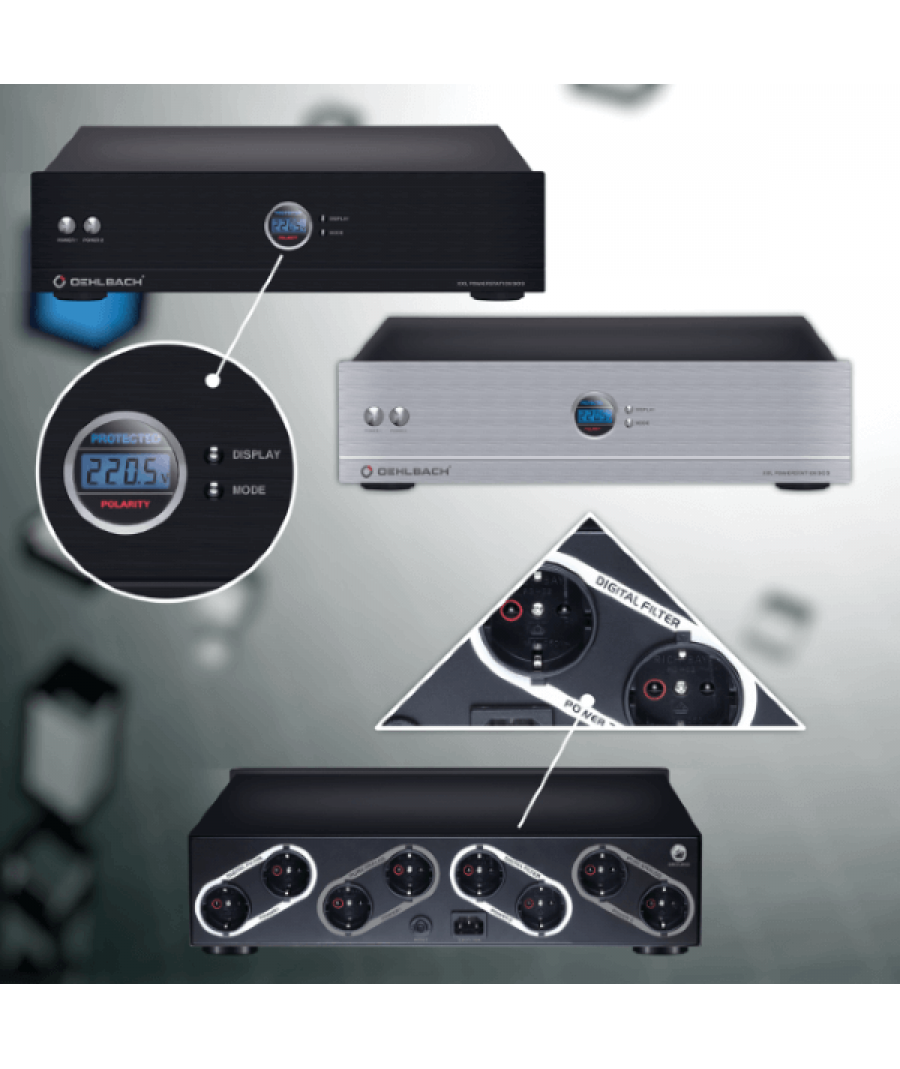 Το Powerstation 909 του OEHLBACH είναι τέλειο τροφοδοτικό πολλαπλών θέσεων, σχεδιασμένο ως έκδοση ραφιού / τραπεζιού 19 ιντσών (22,86 cm) που θα ικανοποιήσει ακόμη και τις υψηλότερες απαιτήσεις. Διαθέτει συνολικά οκτώ ξεχωριστές πρίζες, τέσσερις ψηφιακές (φιλτραρισμένες) και τέσσερις αναλογικές (μη φιλτραρισμένες) πρίζες. Δύο ξεχωριστές πρίζες που αποτελούνται από δύο φιλτραρισμένες και μη φιλτραρισμένες πρίζες η καθεμία μπορεί να αλλάξει ξεχωριστά. Το Powerstation 909 διαθέτει σημάδια φάσης σε κάθε μεμονωμένη πρίζα και υποδεικνύονται οι σωστές συνδέσεις από μια κόκκινη λυχνία ελέγχου για να διασφαλιστεί ότι οι φάσεις του εξοπλισμού είναι σωστά συνδεδεμένες. Αυτός είναι ο μόνος τρόπος για να αποτρέψετε αποτελεσματικά την παρεμβολή ρεύματος εξισορρόπησης στα δεδομένα ήχου και εικόνας. Αυτή η εξαιρετική υποδοχή έχει επίσης εξοπλιστεί με καθυστέρηση λειτουργία (τρία δευτερόλεπτα) για το διακόπτη δικτύου για την αποφυγή δυσάρεστων κορυφών ρεύματος όταν είναι ενεργοποιημένο. Η οθόνη που μπορεί να είναι απενεργοποιημένη και η οποία έχει ενσωματωθεί στον μπροστινό πίνακα από συμπαγές αλουμίνιο παρέχει στους χρήστες πληροφορίες σχετικά με την κατανάλωση ισχύος και την τάση εκείνη τη στιγμή Η διατομή του εσωτερικού αγωγού 3,3 mm², η οποία έχει κατασκευαστεί από καθαρό χαλκό, αποτελεί γνήσια εσωτερική καλωδίωση υψηλής ποιότητας και εγγυάται σταθερή τροφοδοσία ισχύος σε κάθε περίπτωση - ακόμη και για εξαρτήματα με υψηλές απαιτήσεις ισχύος.