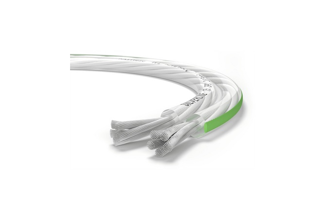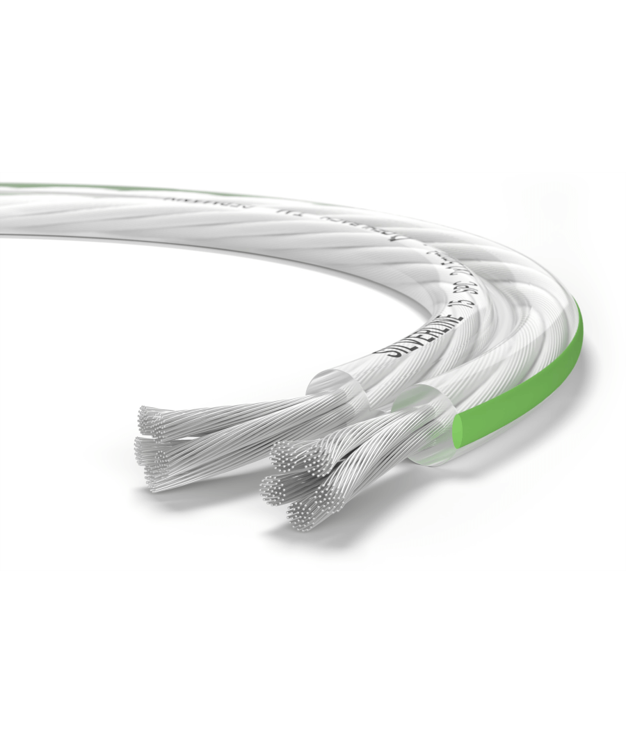 Εξαιρετικά κατασκευασμένο καλώδιο στερεοφωνικού ηχείου τυλιγμένο σε μίνι πηνίο. Αυτό το καλώδιο ηχείων είναι κατάλληλο για αποδόσεις ενισχυτή έως και 300 watt περίπου ισχύος ανά κανάλι ενισχυτή. Η χρήση επάργυρου χαλκού χωρίς οξυγόνο (OFC) ως αγώγιμου υλικού διασφαλίζει ότι μπορεί να επιτευχθεί ένας εξαιρετικά καθαρός και αληθινός ήχος με αυτό το καλώδιο ηχείων. Η χρήση ασημιού για τη βελτίωση αυτού του καλωδίου βοηθά στην περαιτέρω βελτίωση της αναπαραγωγής των πρίμων. Το καλώδιο έχει επίσης κατασκευαστεί από πάρα πολλά πολύ λεπτά σύρματα χαλκού – κάθε μεμονωμένο καλώδιο έχει διατομή περίπου 0,125 mm. Αυτός ο πολύπλοκος σχεδιασμός σημαίνει ότι το καλώδιο είναι ιδιαίτερα αγώγιμο και ευέλικτο σε όλο το μήκος του.