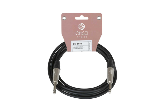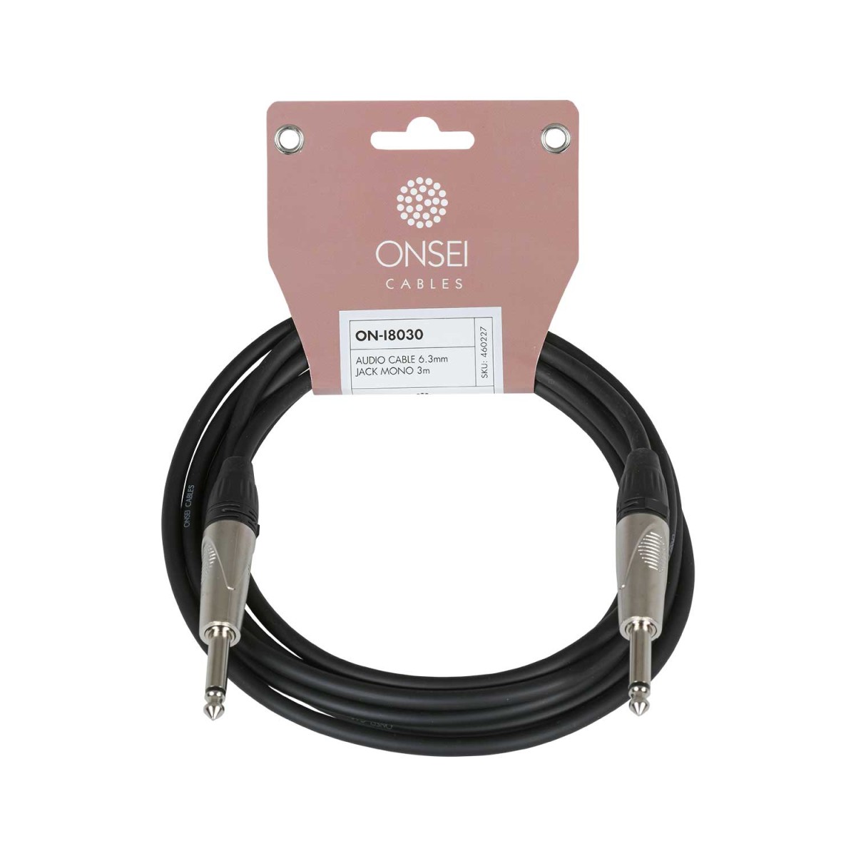Επαγγελματικό καλώδιο jack μονοφωνικό αρσενικό 6.3mm (1/4/") σε jack μονοφωνικό αρσενικό 6.3mm (1/4/"), το καλώδιο έχει θωράκιση και είναι επενδυμένο με PVC μαύρου χρώματος, 3m