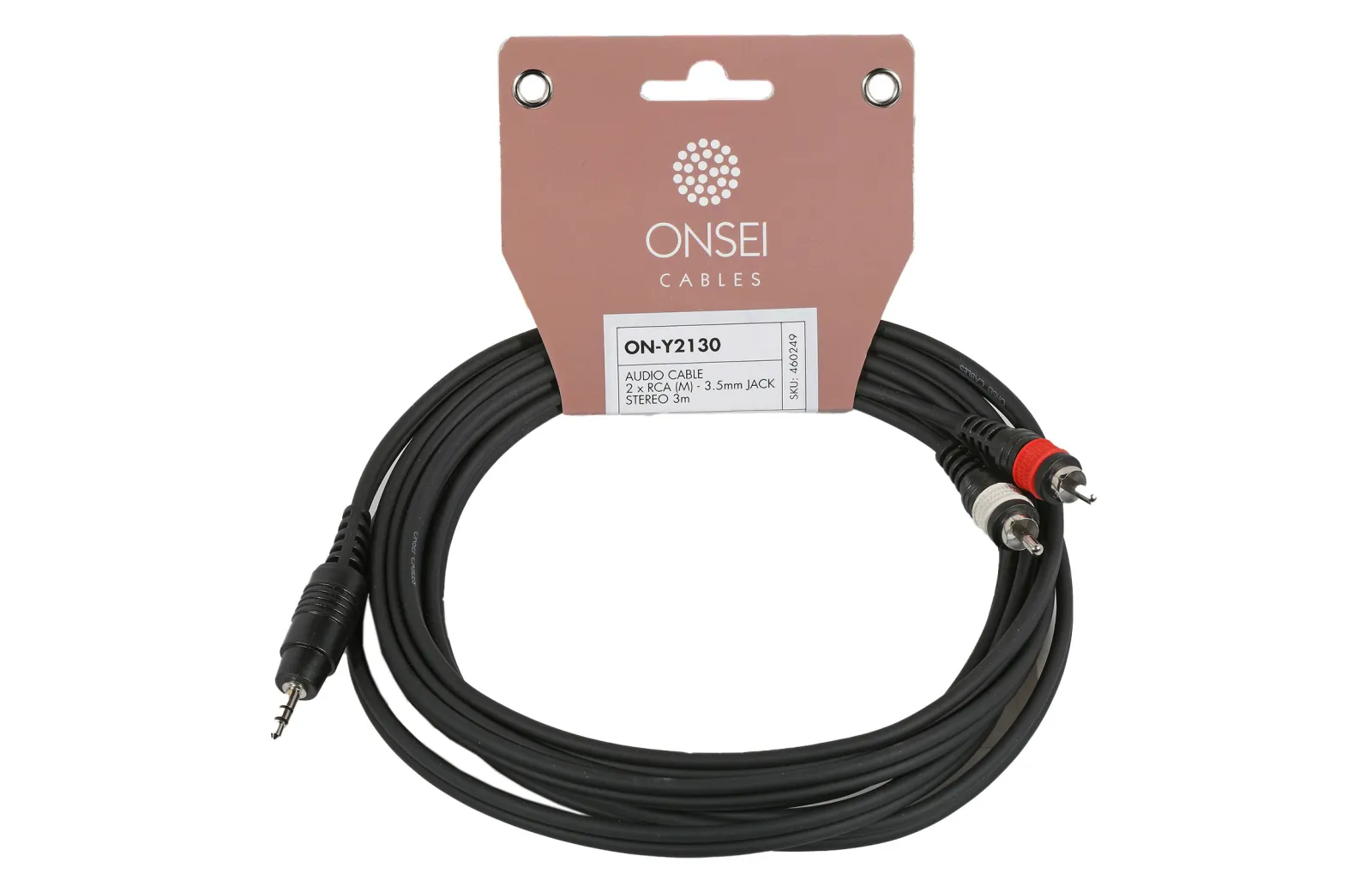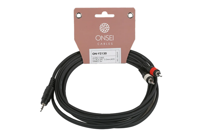 Επαγγελματικό καλώδιο με 2 x RCA αρσενικά σε mini jack στερεοφωνικό αρσενικό 3.5mm, το καλώδιο είναι επενδυμένο με PVC μαύρου χρώματος και διαθέτει θωράκιση, 3m