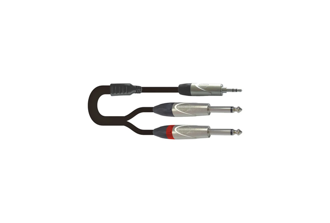 Onsei ON-Y232130, καλώδιο σήματος με 2 x 6.3mm Jack αρσενικά μονοφωνικά σε 3.5mm μini Jack στερεοφωνικό, 2m