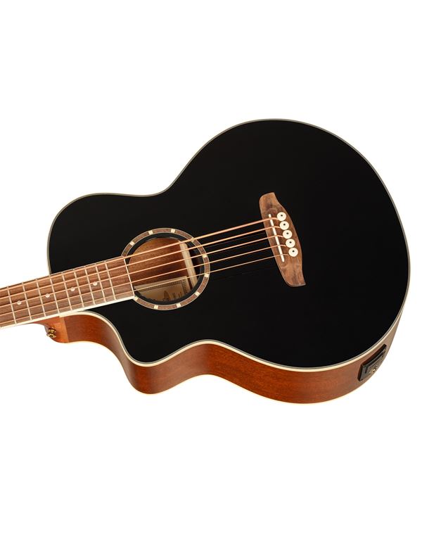 Η σειρά D8 Bass της Ortega Guitars διαθέτει καπάκι από έλατο και πίσω/πλαινές πλευρές από sapele, προσφέροντας ζεστό και ισορροπημένο ήχο.