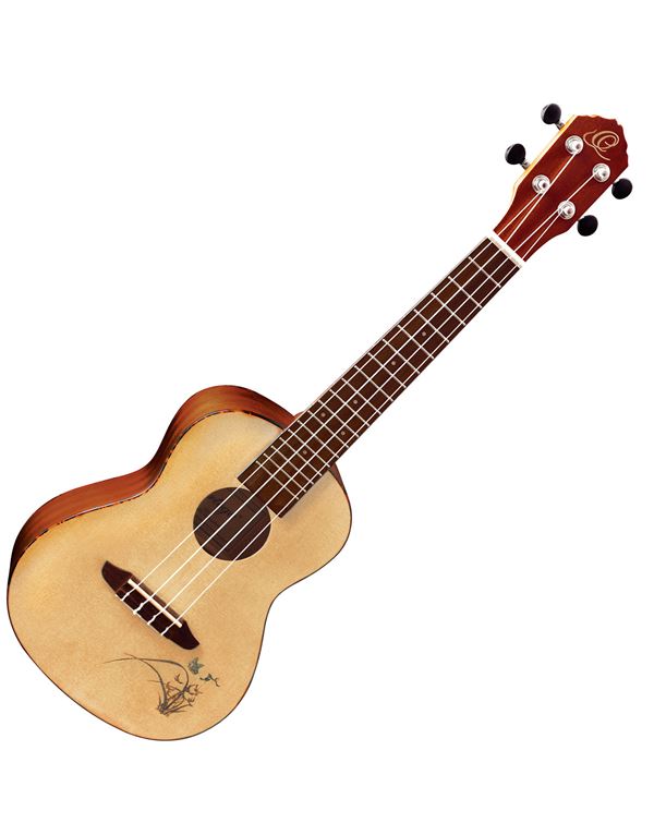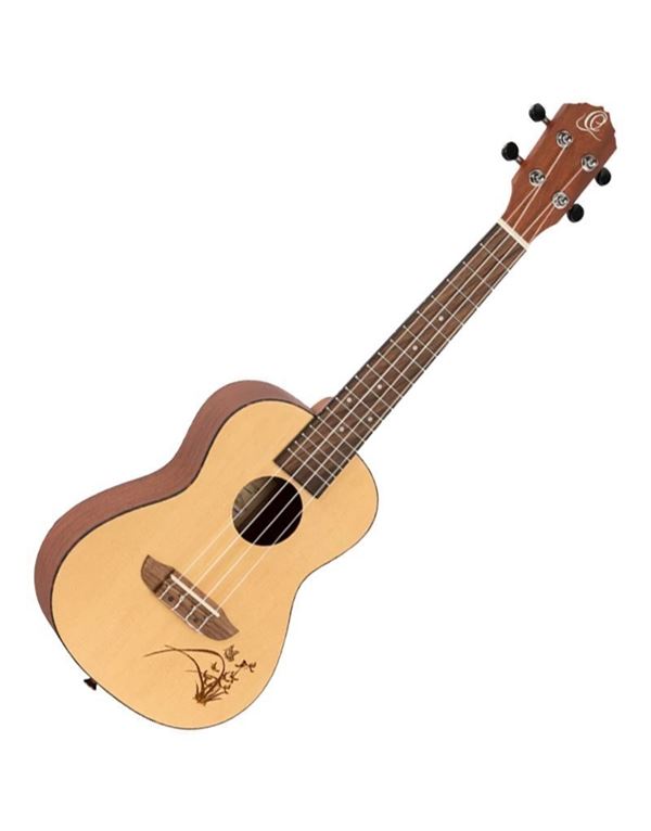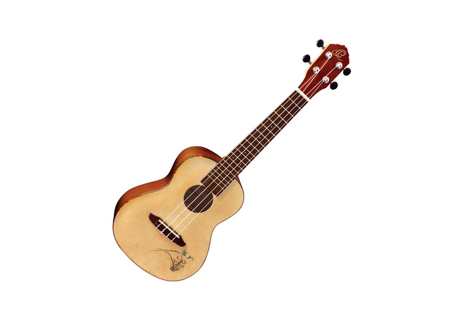 Ukulele Concert ORTEGA RU5. Κατασκευασμένο από επιλεγμένα υλικά με προσεγμένο φινίρισμα και διακριτική διακόσμηση στο καπάκι, χαραγμένη με λέιζερ.