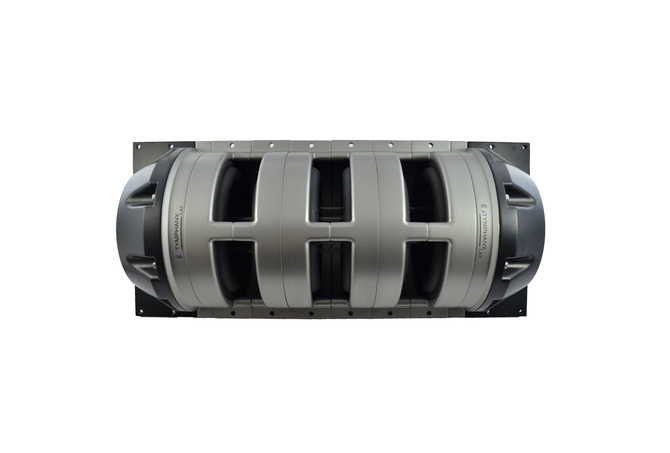 Ισχυρό μπάσο χωρίς κραδασμούς. Η ισχύς δύο 12” subwoofer σε μία κομψή σωληνωτή κατασκευή διαμέτρου mm ( ”) x mm, 1000 W, 4 ohm ( ), 89 db Τρύπα : x mm Βάθος : mm