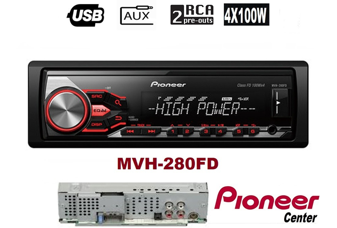 Ειδικά σχεδιασμένο για δυναμικό ήχο, το MVH-280FD είναι εξοπλισμένο με ραδιοφωνικό δέκτη RDS και δυνατότητα αναπαραγωγής από iPod, iPhone, Android smartphone και άλλων συσκευών μέσω USB ή Aux-In θύρες στην πρόσοψη.