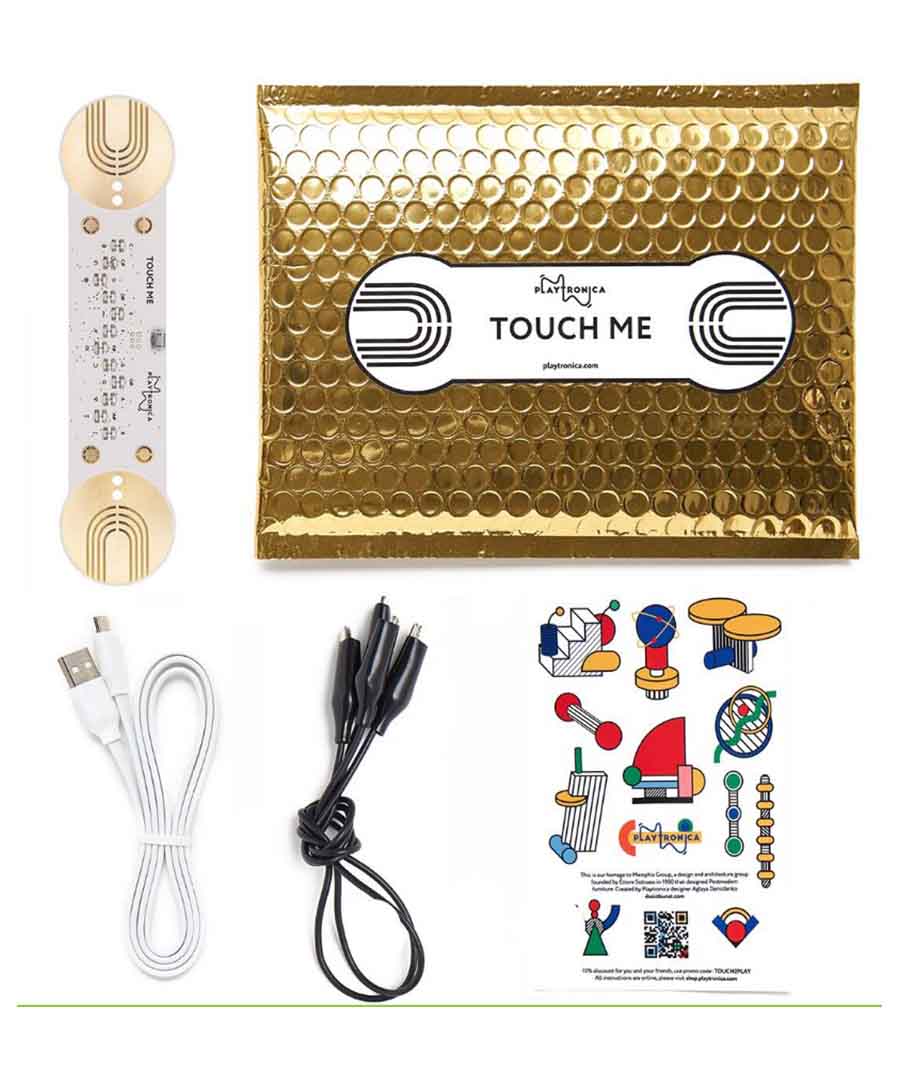 Πώς θα το χρησιμοποιήσετε- Συνδέστε το TouchMe σε υπολογιστή, τηλέφωνο ή tablet- Χρησιμοποιήστε το Google Chrome για να ανοίξετε το synth.playtronica.com και επιλέξτε όποιο synth σας αρέσει- Αγγίξτε και τα δύο άκρα του TouchMe για αναπαραγωγή- Εάν είστε με έναν φίλο, τότε ο καθένας από εσάς θα πρέπει να αγγίξει το ένα άκρο του TouchMe και να παίξετε ο ένας στο δέρμα του άλλου Πρόσθετες πληροφορίες:- Το TouchMe δεν είναι αδιάβροχο- Το TouchMe είναι απολύτως ασφαλές, αλλά δεν συνιστούμε τη χρήση του σε άτομα με βηματοδότες (για κάθε περίπτωση)Το kit περιλαμβάνει - MIDI TouchMe, καλώδιο USB, φάκελος αποθήκευσης, set αυτοκόλλητα