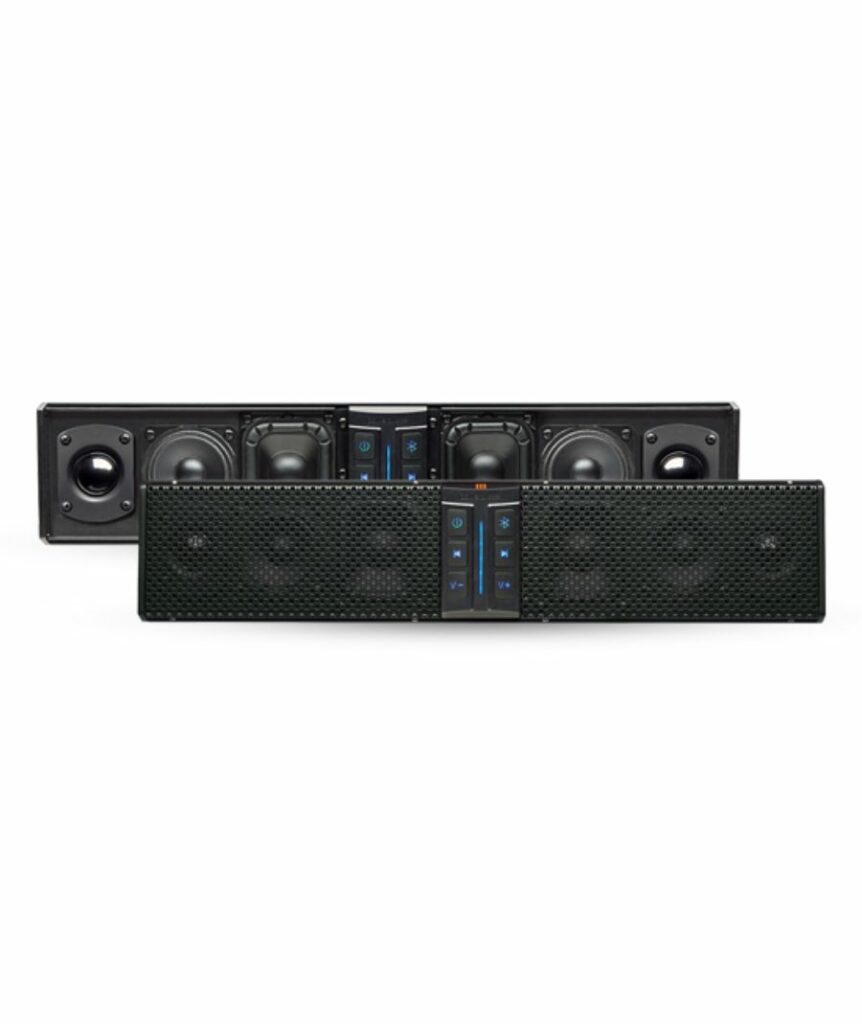 6 Ηχεία 250 watt Ενισχυμένη SoundBar Bluetooth PowersportsΑξιολόγηση IPX62 x 3,5" τετράγωνα κωνικά woofers2 x 3" Πλήρους γκάμας Marine Grade Poly Cone ηχεία2 x 1" SD Mylar TweetersΑδιάβροχο περίβλημα από εξωθημένο αλουμίνιο βαρέως τύπουΠίνακας ελέγχου με οπίσθιο φωτισμό LEDΟπτικές ειδοποιήσεις LEDΗχητικές ειδοποιήσεις ενεργοποίησης/απενεργοποίησηςΕνσωματωμένος επεξεργαστής DSPBluetooth και ενσύρματες είσοδοι RCAΈξοδος γραμμής RCA 2 VoltΚύκλωμα αυτόματης ενεργοποίησης/απενεργοποίησηςΑδιάβροχοι συρμάτινοι αργαλειοί συνδετήρεςΠεριλαμβάνεται γενικό σύστημα στερέωσης με βραχίονα L ή μπουλόνιΒάσεις στήριξης τύπου σφιγκτήρα γενικής χρήσης επάνω ή κάτω (πωλούνται χωριστά XL-SBCLAMP2, XL-SBTCLAMP, XL-SBSCLAMP)Προαιρετικό ασύρματο τηλεχειριστήριο (Πωλείται χωριστά XL-SBCONRF σύντομα)Χαρακτηριστικά: - RMS Power (watts) 300