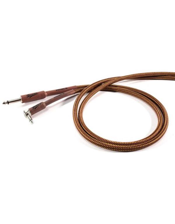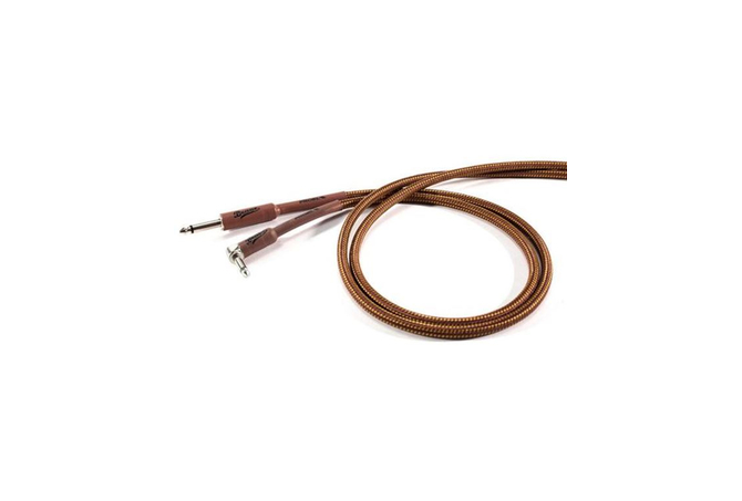 Καλώδιο από ένα ίσιο καρφί 6.3mm mono αρσενικό σε ένα γωνιακό καρφί 6.3mm mono αρσενικό 5m, ύφασμα καφέ με κίτρινο