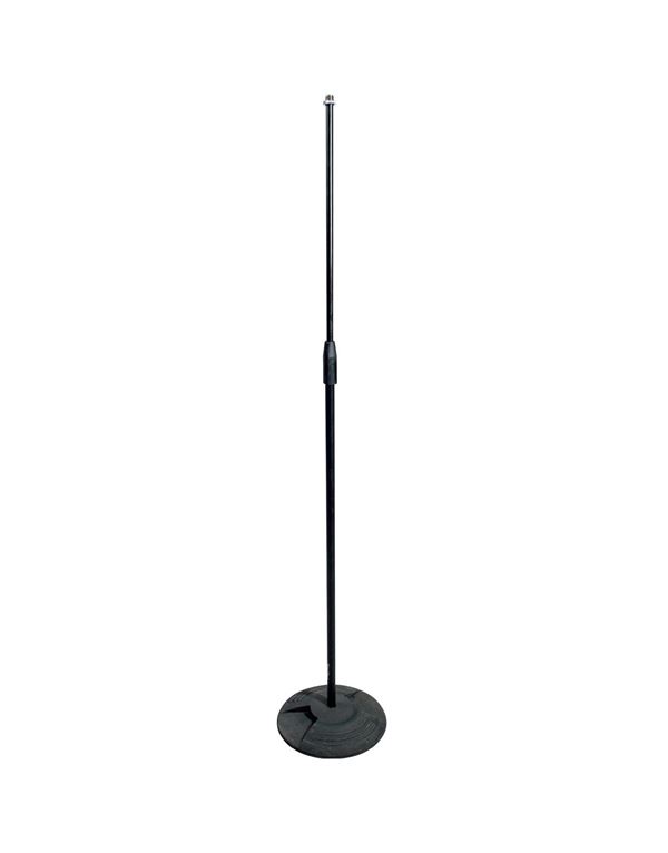 Μαύρη επιδαπέδια βάση για μικρόφωνο χωρίς οριζόντιο βραχίονα με στήριξη σε δίσκο που παρέχει αντικραδασμική προστασία.