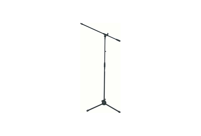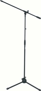 Μαύρη τρίποδη επιδαπέδια βάση για μικρόφωνο, με οριζόντιο βραχίονα.