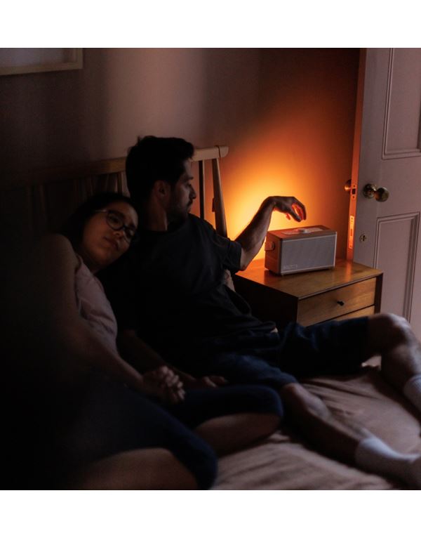 Ένα κομψό φορητό ηχείο Bluetooth που δημιουργεί ατμόσφαιρα με φωτιστικά εφέ και εντυπωσιακό ήχο, μέσα και γύρω από το σπίτι.