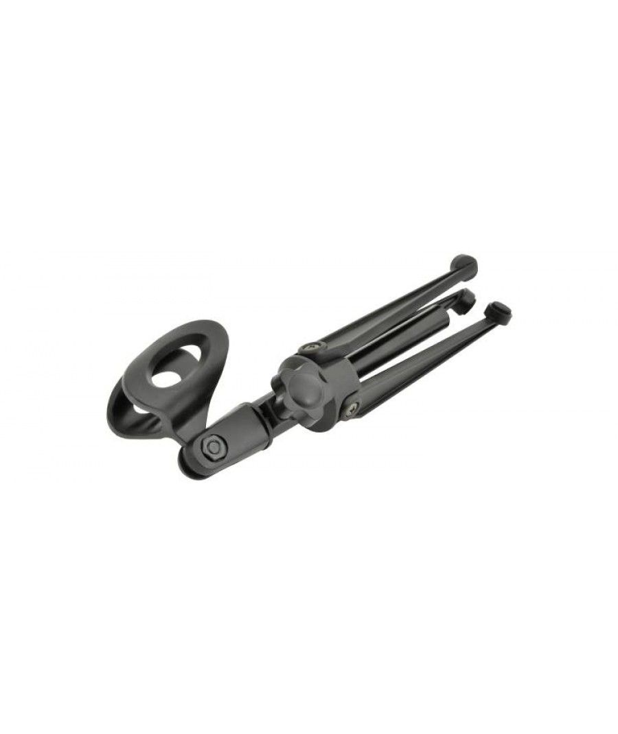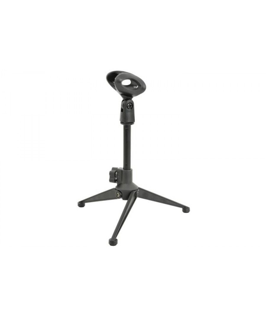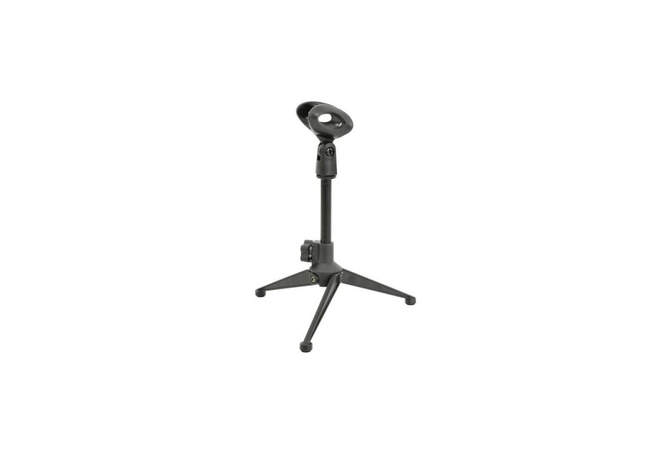 Μια βάση επιτραπέζιου μικροφώνου με αναδιπλούμενα πόδια τρίποδου που προσφέρουν εύκολη εγκατάσταση και άνετη αποθήκευση. Ιδανικό για χρήση σε συνέδρια και στούντιο.