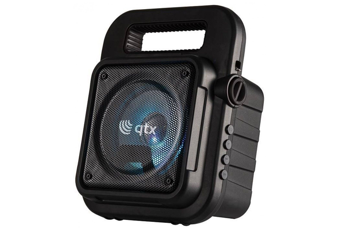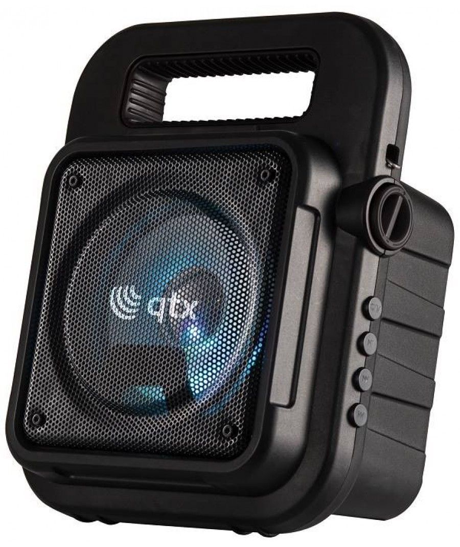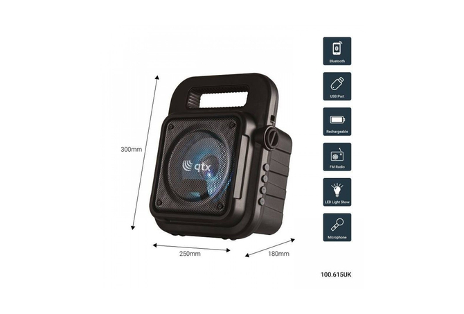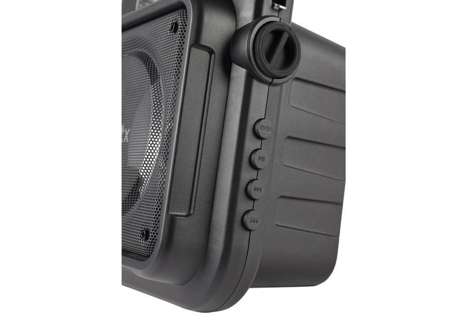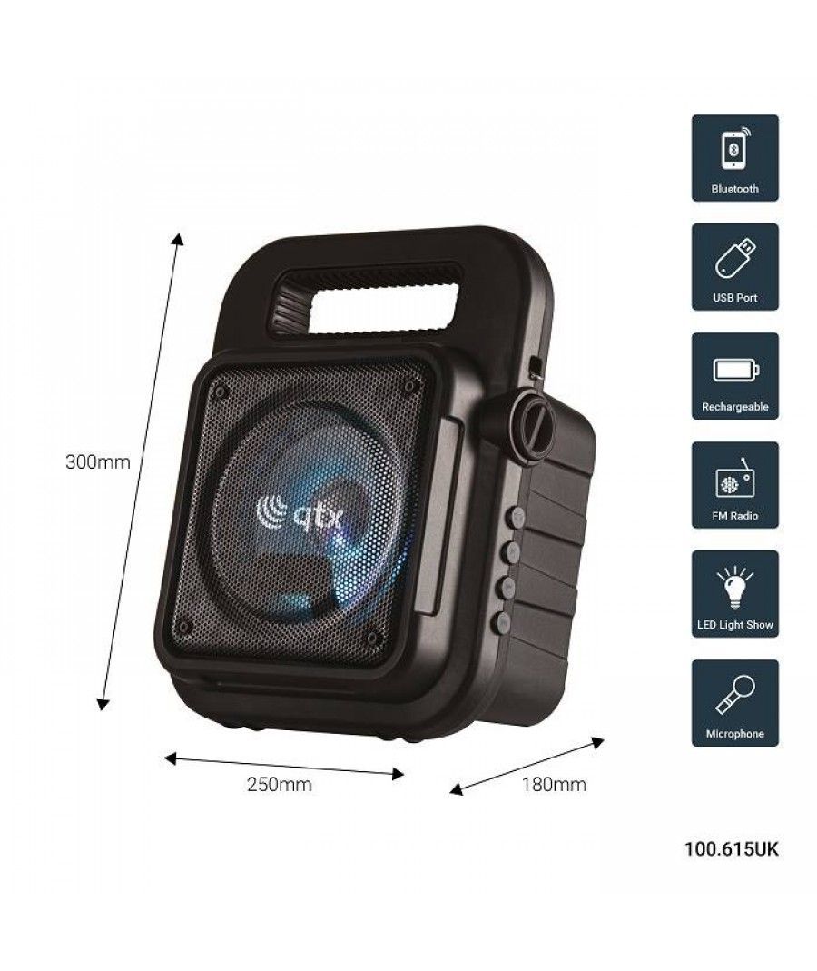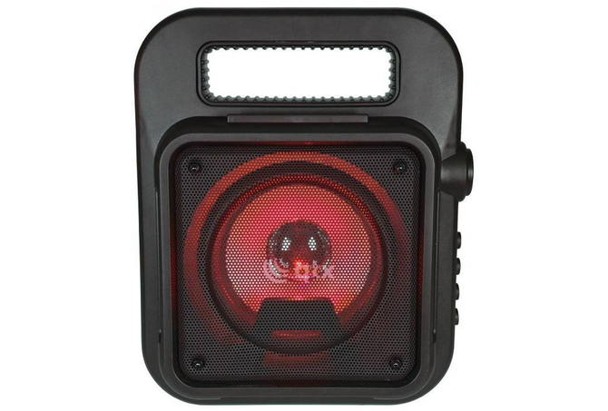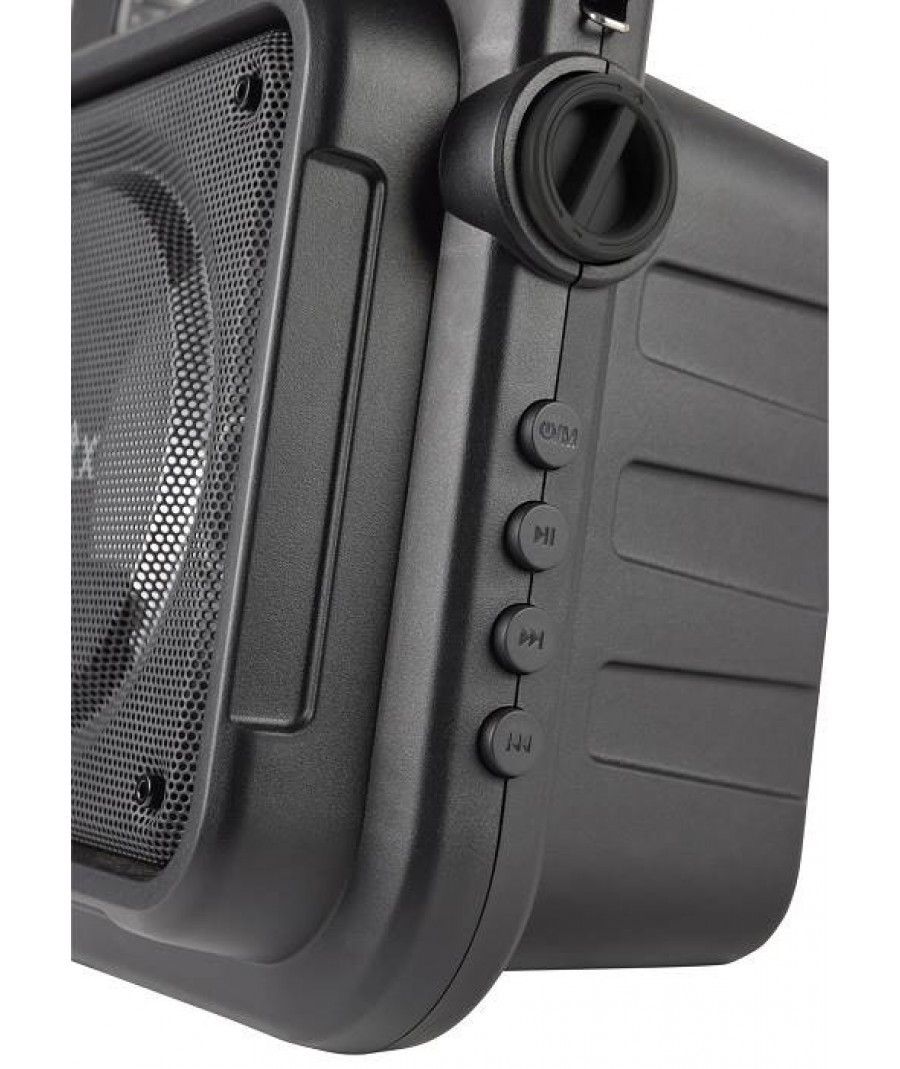 Πάρτε το πάρτι μαζί σας όπου κι αν πάτε, με ένα φορητό ηχείο Bluetooth με πολύχρωμο φως LED. Ιδανικό για καραόκε. Συνδέστε το μικρόφωνο για να δείξετε το ταλέντο σας και να καταγράψετε τραγούδια με τη λειτουργία εγγραφή φωνής. Μπορείτε να αναπαράγετε την αγαπημένη σας μουσική μέσω Bluetooth από την smart συσκευή σας. Χρησιμοποιήστε τις ενσωματωμένες θύρες πολυμέσων και το ραδιόφωνο FM. Αυτό το ηχείο είναι αρκετά ελαφρύ ώστε να μεταφέρεται με ιμάντα ώμου και διαθέτει εσωτερική επαναφορτιζόμενη μπαταρία με ισχύ έως και 3 ώρες από μία μόνο φόρτιση.