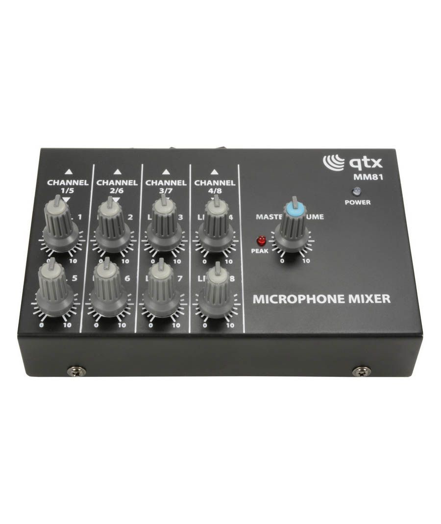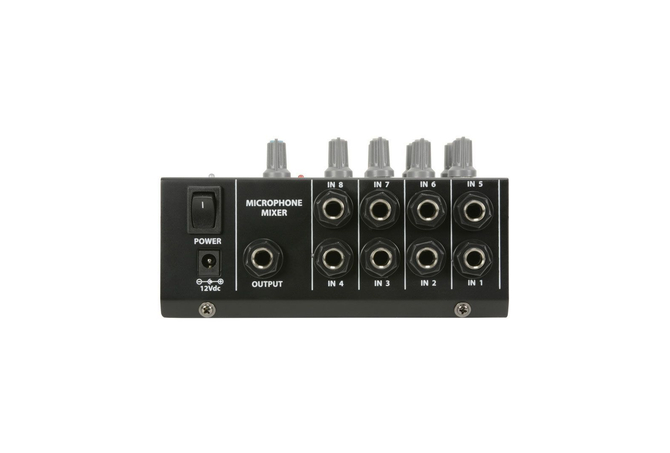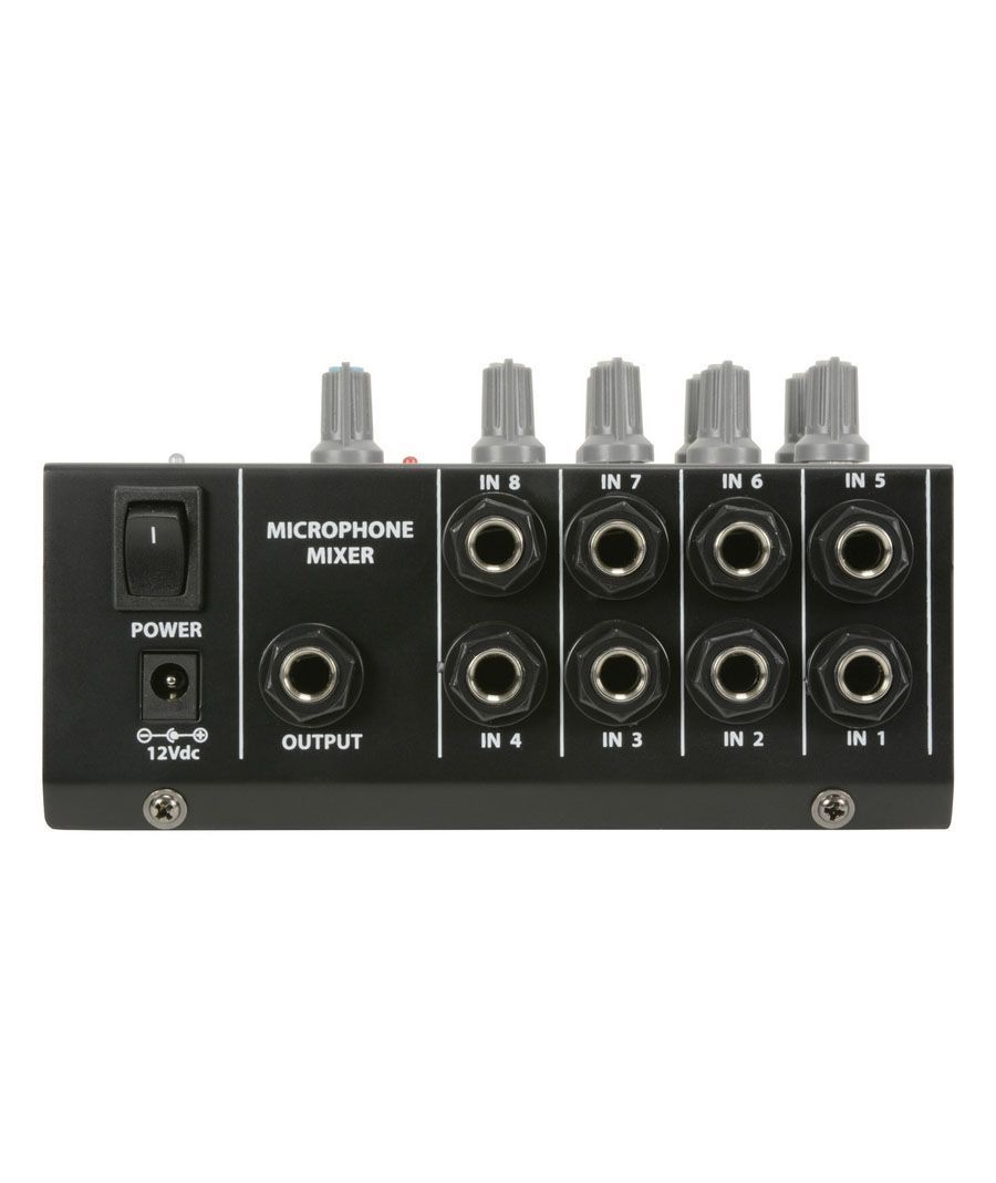 Μικρός μίκτης κατάλληλος για μικρά μικρόφωνα με 8 εισόδους υποδοχής χαμηλής σύνθετης αντίστασης, που αναμιγνύονται με μία μόνο κύρια έξοδο jack. Ενσωματωμένα ξεχωριστά χειριστήρια έντασης για κάθε μικρόφωνο και κύρια έξοδο. Τροφοδοσία μέσω μπαταρίας 1 x 9V ή προαιρετικό αντάπτορα 12Vdc.Προαιρετική είσοδος ισχύος 12VdcΠαρέχεται με μπαταρία 9VΧαρακτηριστικά: