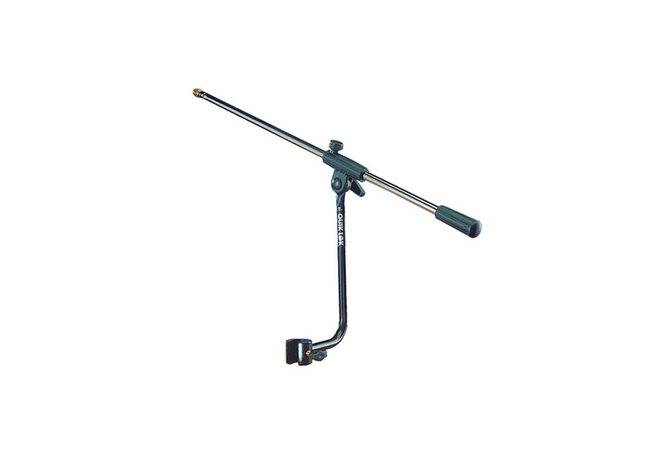 Μαύρη βάση για μικρόφωνο με οριζόντιο βραχίονα που στηρίζεται πάνω σε άλλες βάσεις. Τοποθετείται σε βάσεις μικροφώνων, βασεις οργάνων, αναλόγια και οποιαδήποτε άλλα κατακόρυφα τμήματα σωλήνων με διάμετρο μέχρι 20mm.