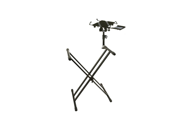 Πρόσθετη βάση φορητού υπολογιστή για τοποθέτηση σε βάση αρμονίου. Δυνατότητα προσαρμογής σε οποιαδήποτε βάση τύπου "Χ" με διάμετρο σωλήνα 30 mm.