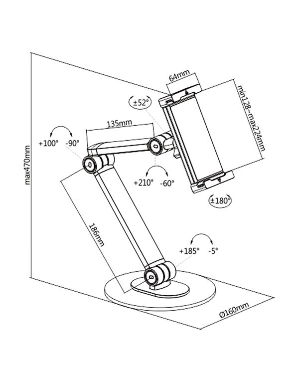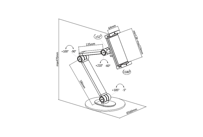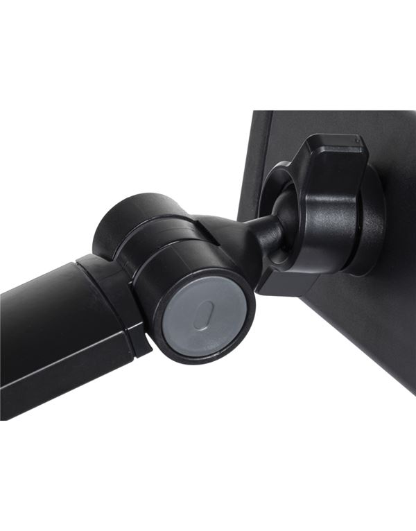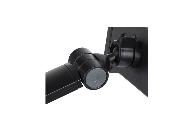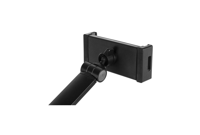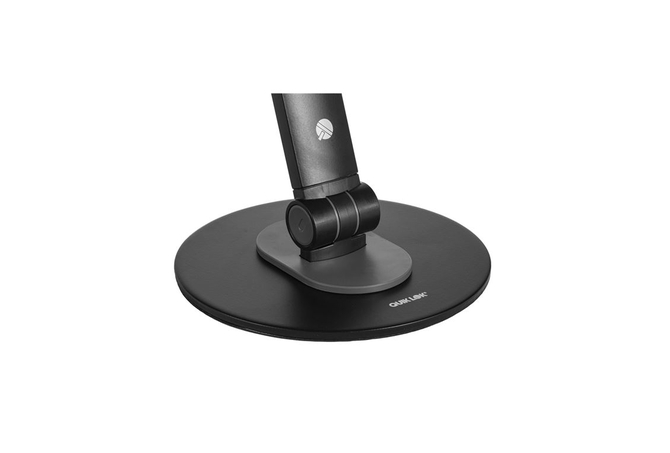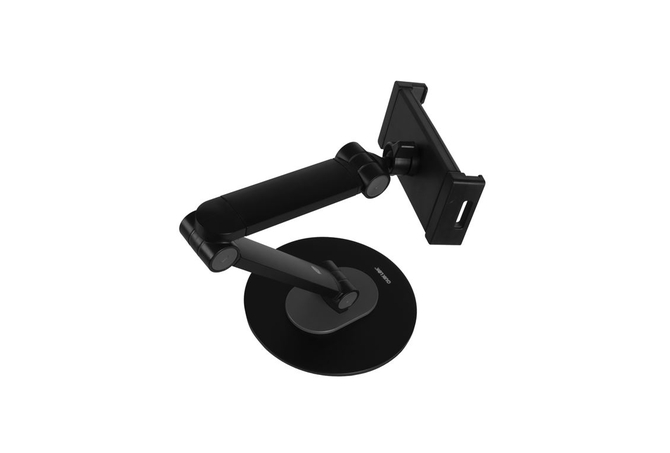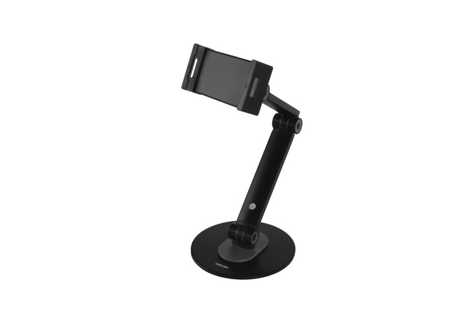 Μεγάλη σταθερότητα εγγυάται η φαρδιά κυκλική βάση των 6 cm και το βάρος 1,1 kg. Δύο ρυθμιζόμενοι βραχίονες σάς επιτρέπουν να φτάσετε σε μέγιστο ύψος 40 cm και η άρθρωση στη βάση μέσω ενός μηχανισμού επιτρέπει την άνετη ρύθμιση της γωνίας. Η βάση επιτρέπει την τοποθέτηση συσκευών με ελάχιστο πλάτος 13 cm και μέγιστο 21,5 cm χάρη στον κρυφό μηχανισμό ελατηρίου.
